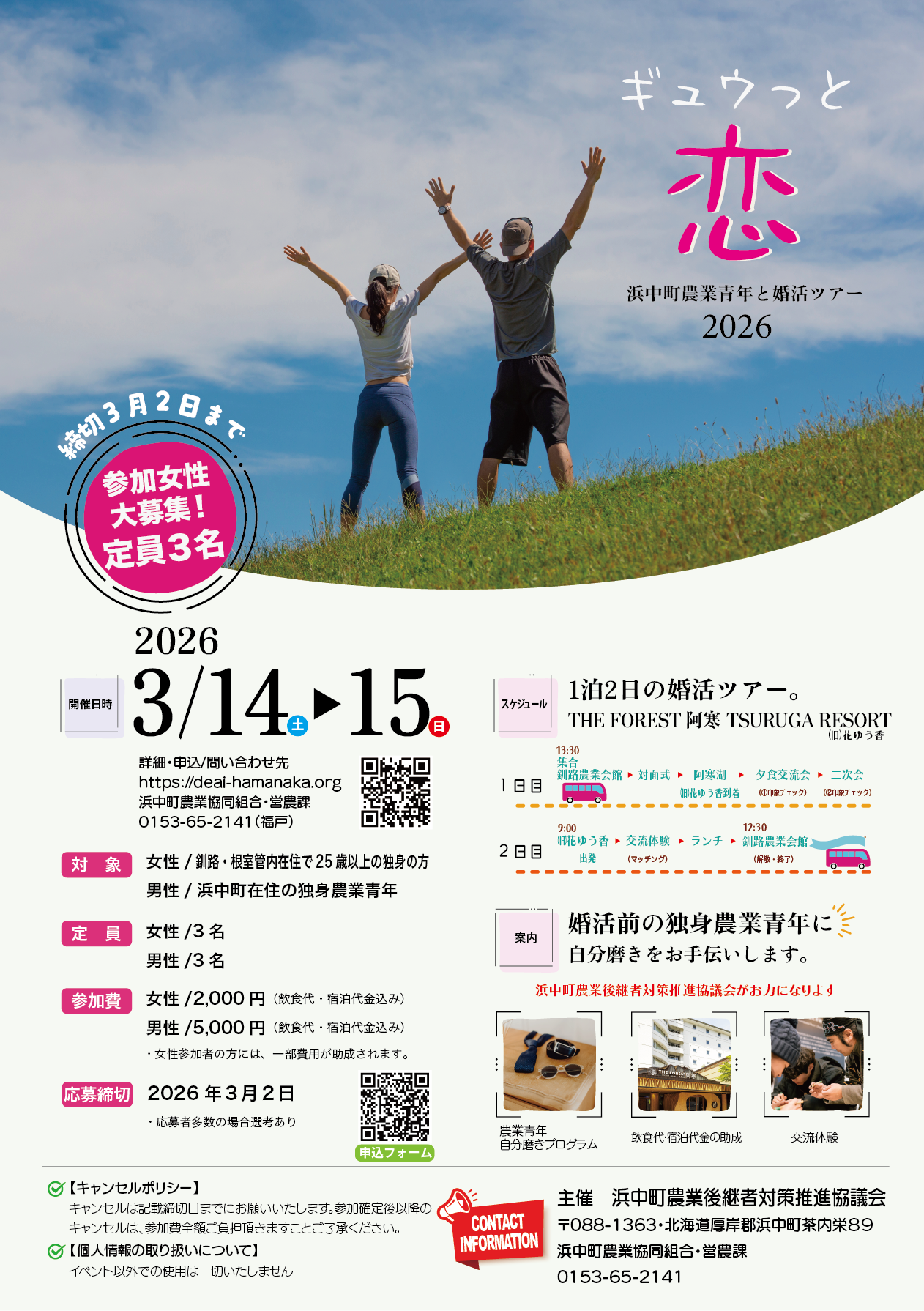 募集対象 女性/釧路・根室管内在住で25歳以上の独身の方